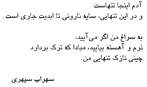 سهراب موقع سرودن این شعر سی و شش سالش بوده و به نظر من به درک عمیقی از زندگی رسیده که باهاش به شدت احساس نزدیکی میکنم.